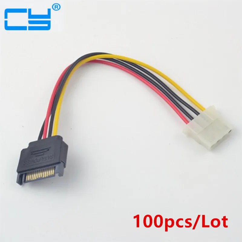 100pcs/Lot High Quality SATA 15Pin Male to IDE 4Pin Female Power Convert Cable Adapter for BTC Miner Machine 15cm